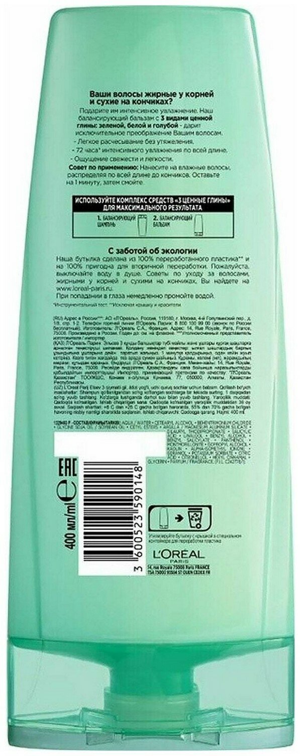 Loreal Elseve Бальзам-ополаскиватель Ценные глины балансирующий 400 мл 1 шт интересное: