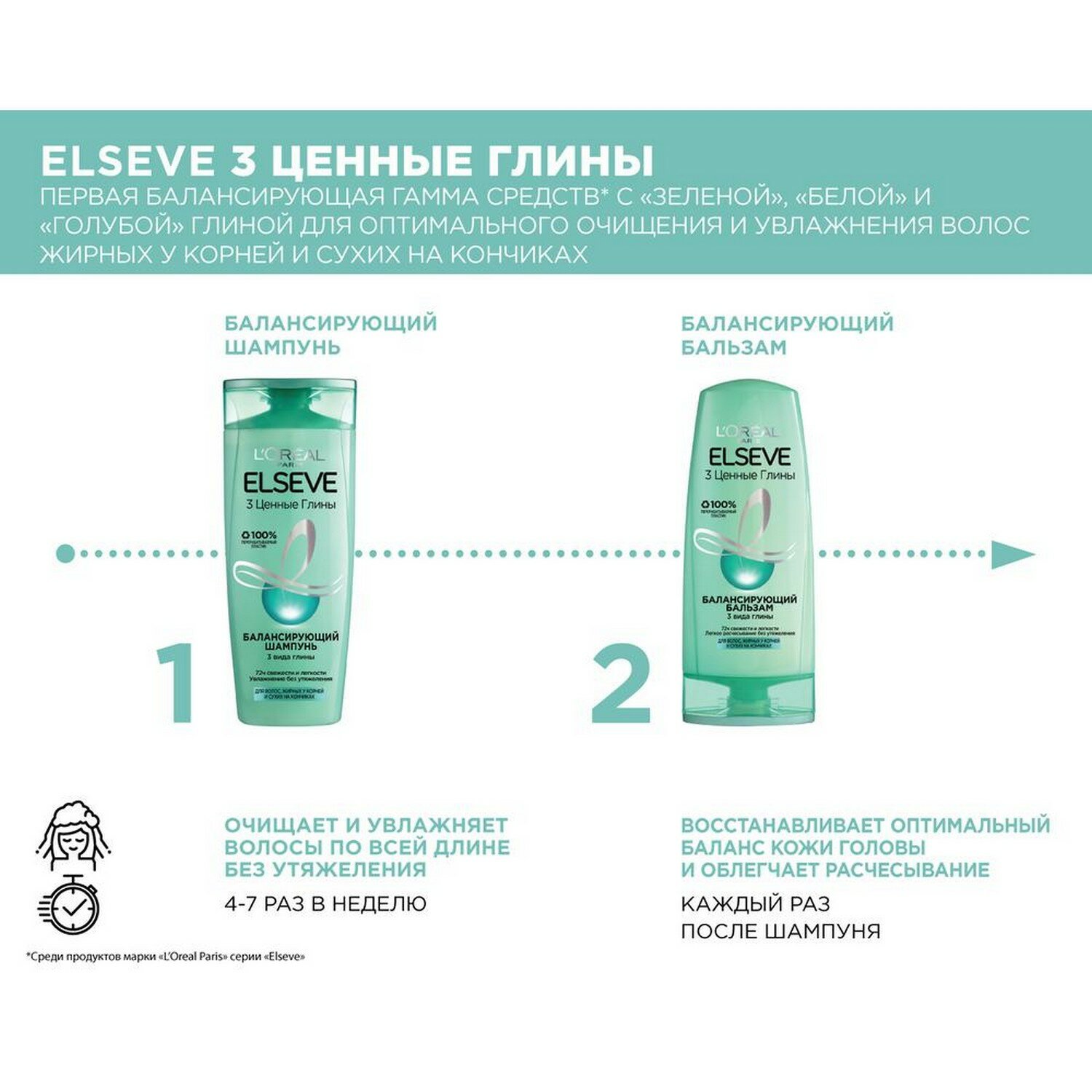 Elseve Балансирующий бальзам 3 Ценные Глины для волос, жирных у корней и сухих на кончиках, 200 мл