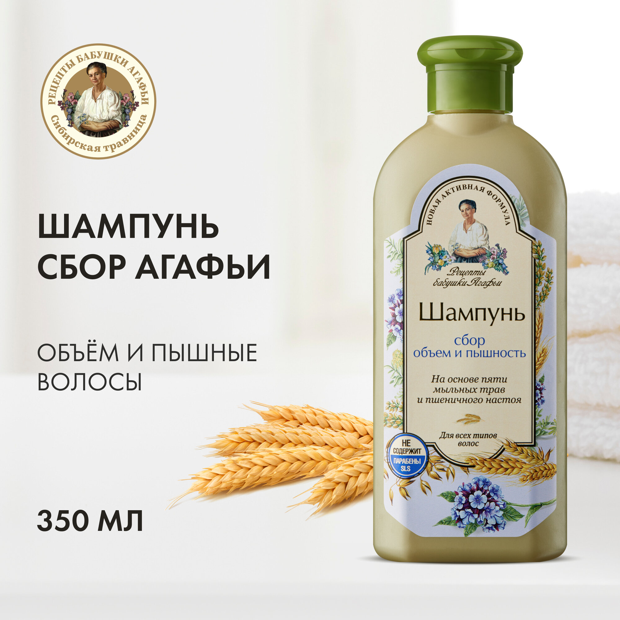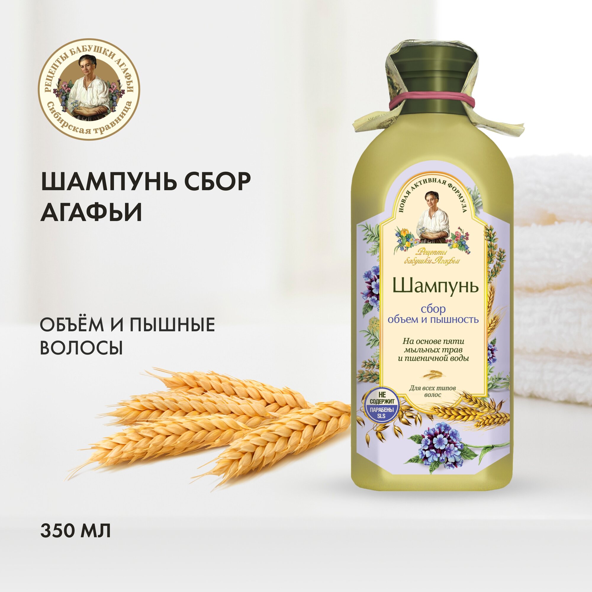 Купить Шампунь-сбор для волос «Объем и пышность» для всех типов волос Рецепты бабушки Агафьи, 350 мл