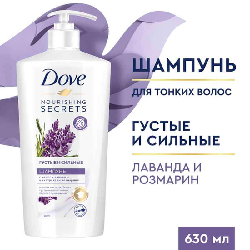 Купить DOVE NOURISHING SECRETS шампунь густые И сильные лаванда И розмарин 630МЛ
