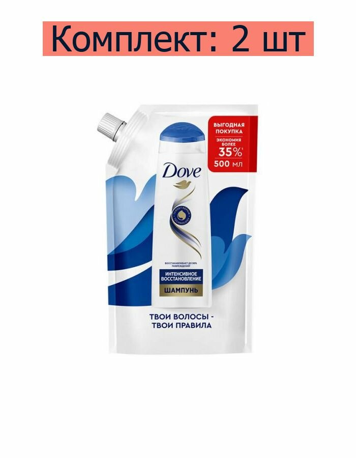 DOVE Шампунь для волос интенсивное восстановление, 500мл дой-пак, 2шт.