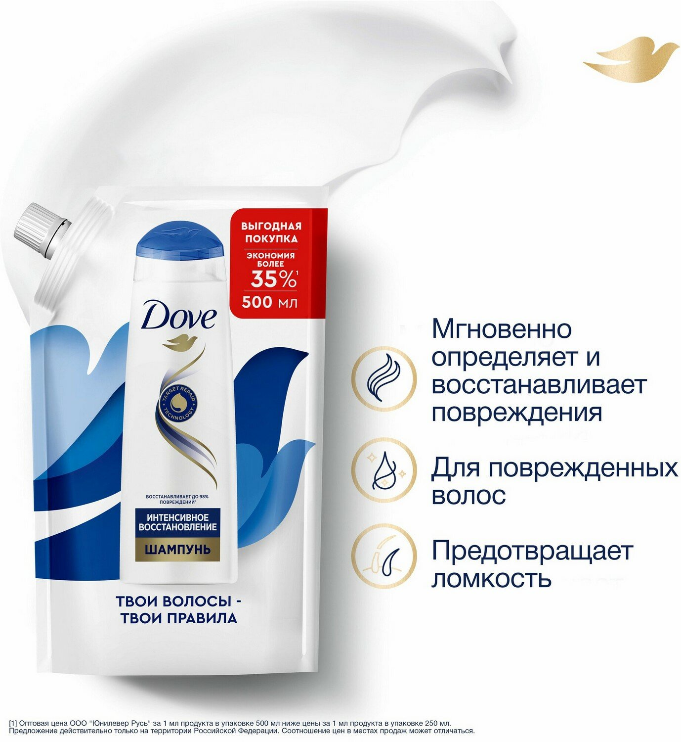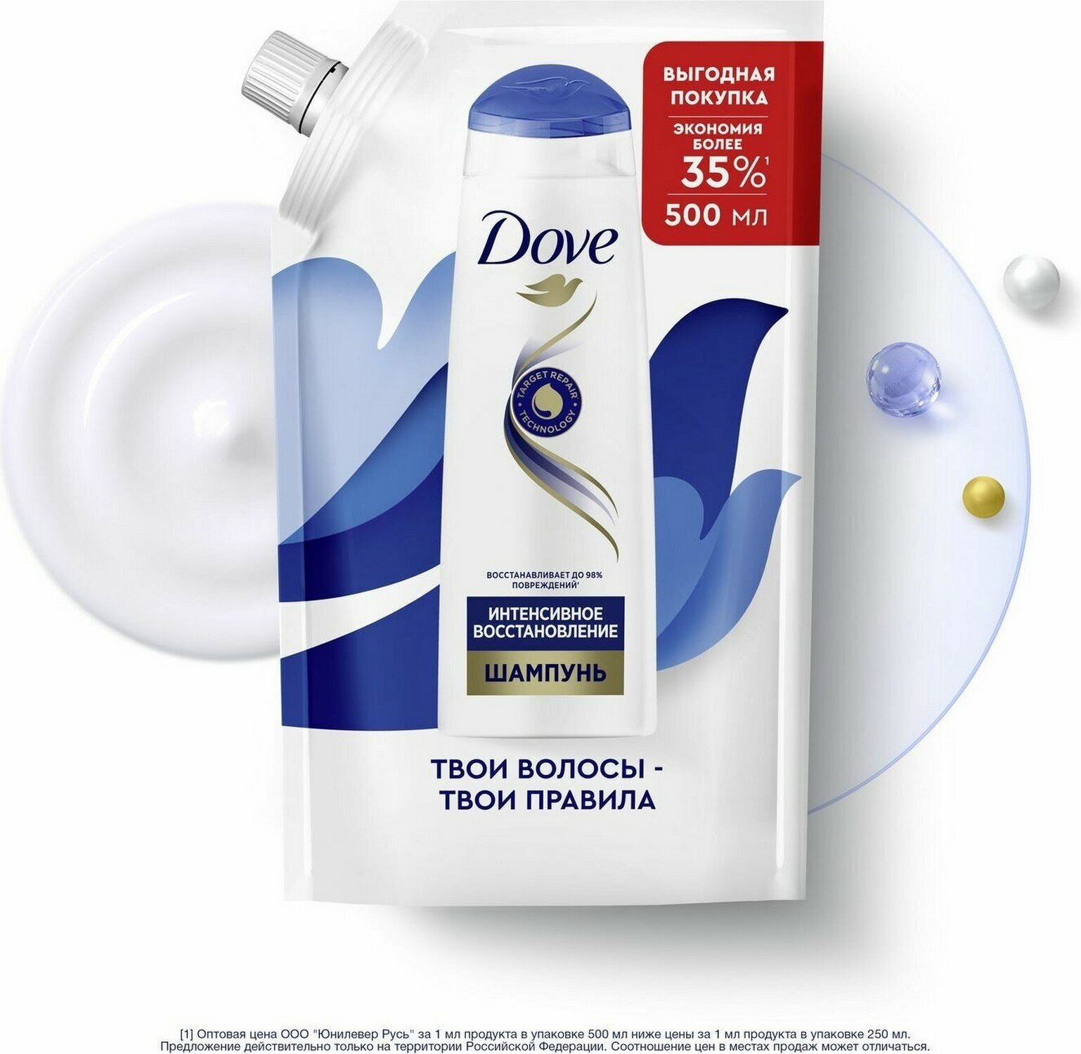DOVE Шампунь для волос интенсивное восстановление, 500мл дой-пак, 2шт.