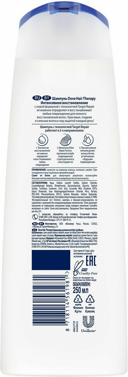 Шампунь Dove Hair Therapy, Интенсивное восстановление Блю, 250 мл (67948593)