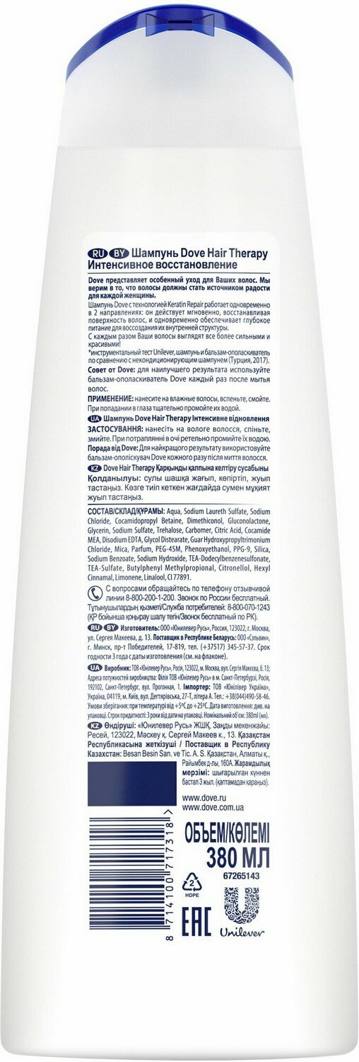 Dove Hair Therapy шампунь для поврежденных волос интенсивное восстановление 380 мл