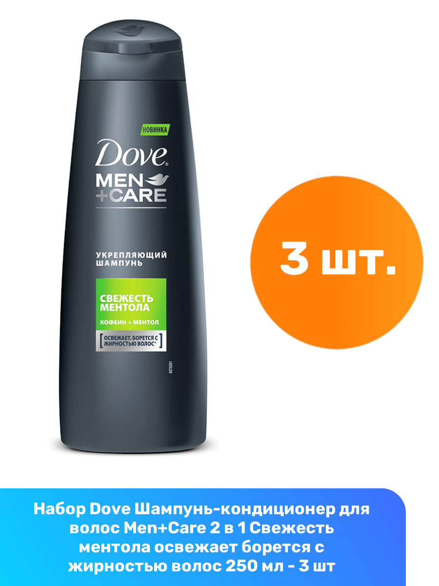 Купить Dove Шампунь-кондиционер для волос Men+Care 2 в 1 Свежесть ментола освежает борется с жирностью волос 250 мл - 3 шт