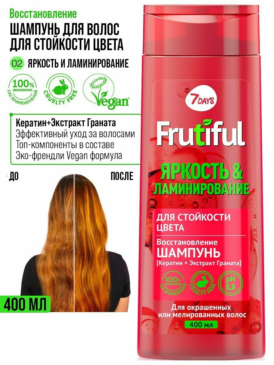 Шампунь и бальзам для волос 7DAYS FRUTIFUL Яркость и Ламинирование, набор для окрашенных волос