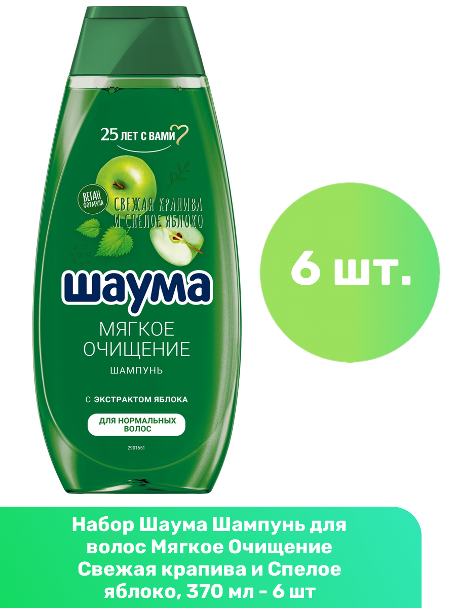 Шаума Шампунь для волос Мягкое Очищение Свежая крапива и Спелое яблоко, 370 мл - 6 шт интересное: