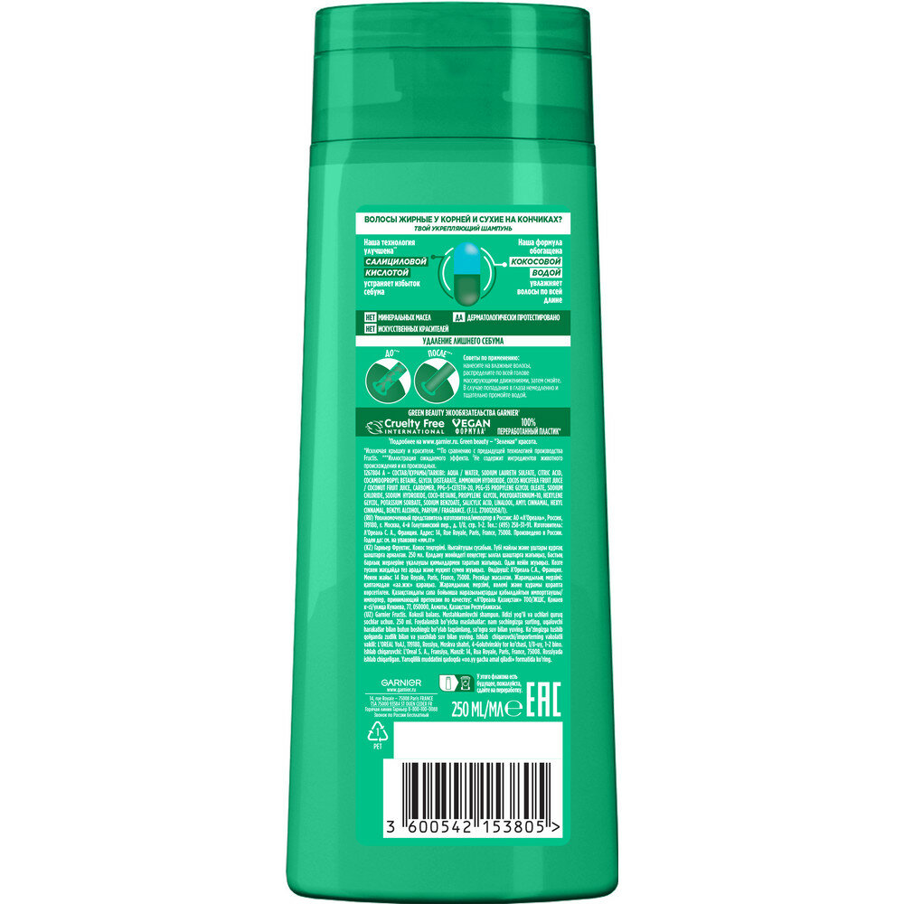 Garnier Fructis Укрепляющий шампунь Фруктис Кокосовый Баланс для волос жирных у корней и сухих на кончиках, 250 мл