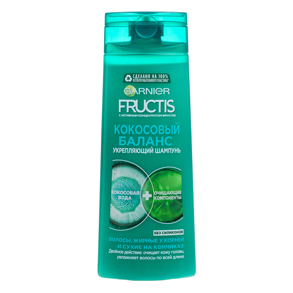 Garnier Fructis Укрепляющий шампунь Фруктис Кокосовый Баланс для волос жирных у корней и сухих на кончиках, 400 мл