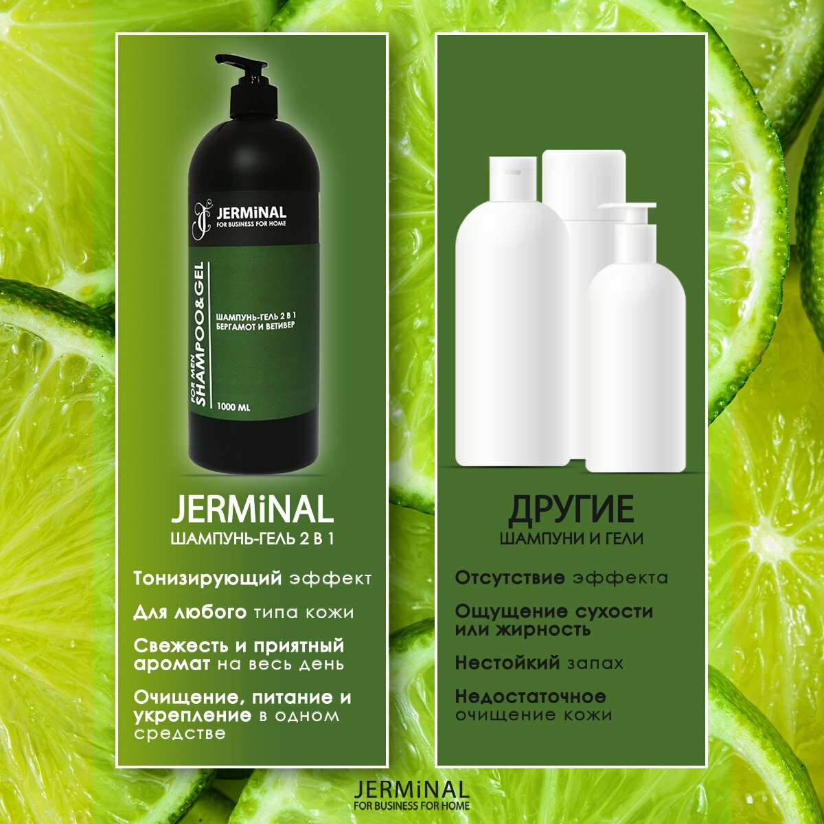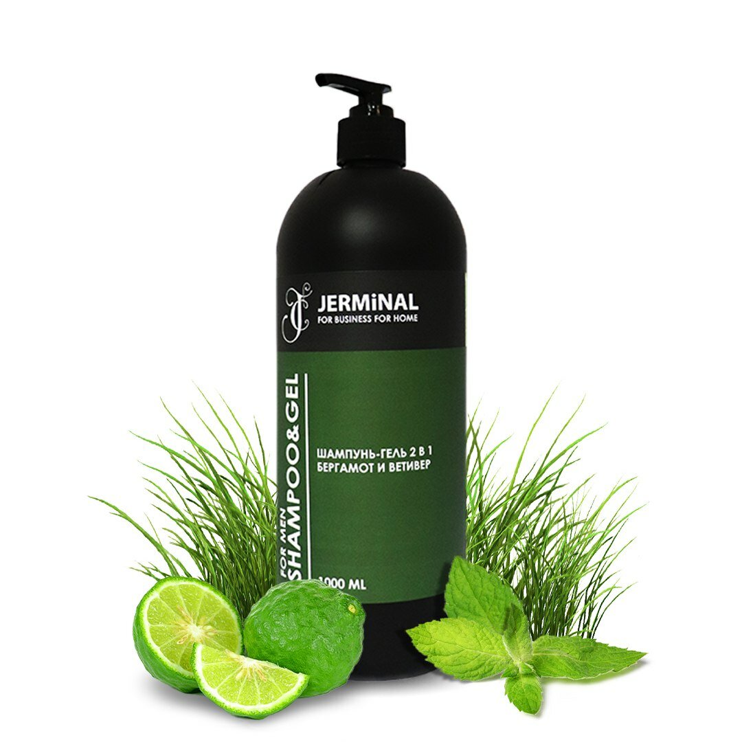 Шампунь для волос мужской JERMiNAL -COSMETICS- Бергамот и ветивер 2в1, 1 литр