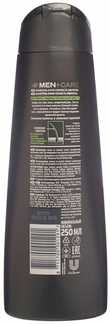 DOVE Шампунь муж Свежий ментол, 250мл