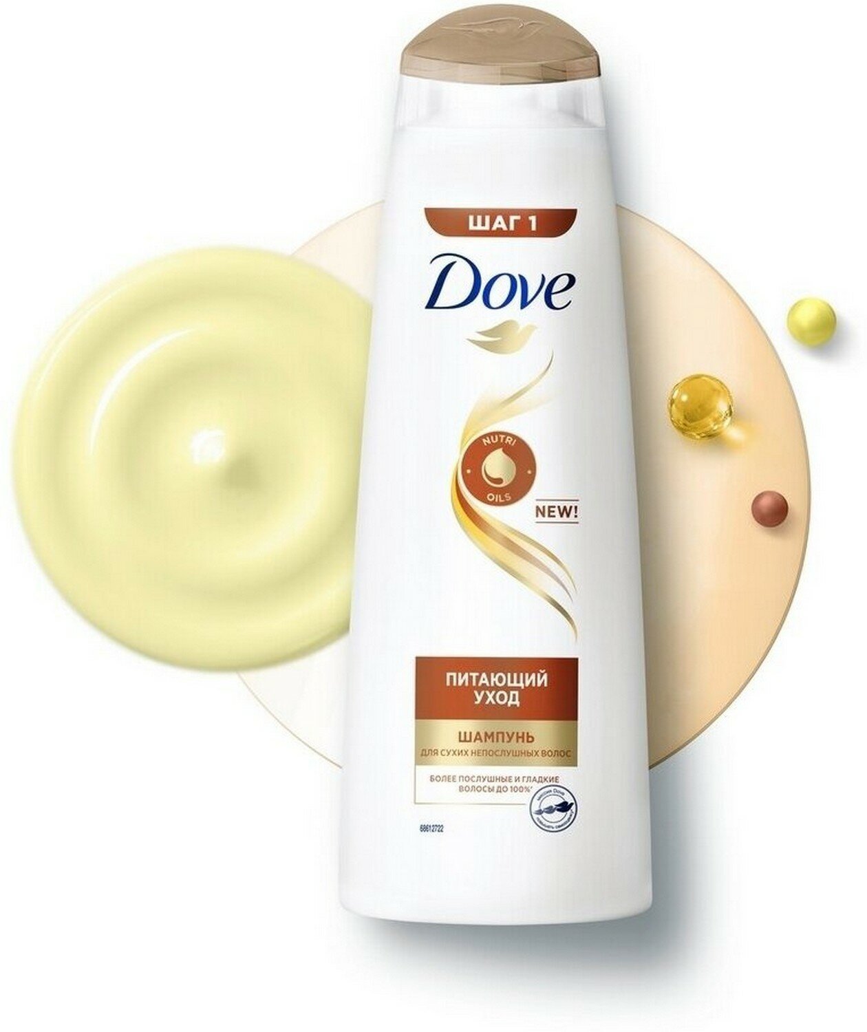 Dove Шампунь Питающий уход для сухих непослушных волос, 380 мл , 2 шт.