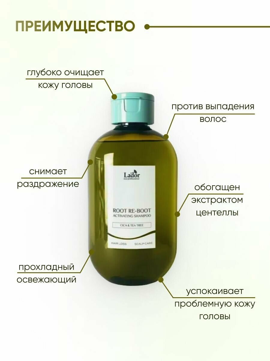 Купить Lador Root Re-Boot Activating Shampoo (Cica&Tea Tree) Шампунь против выпадения волос для жирной и проблемной кожи головы - 300мл