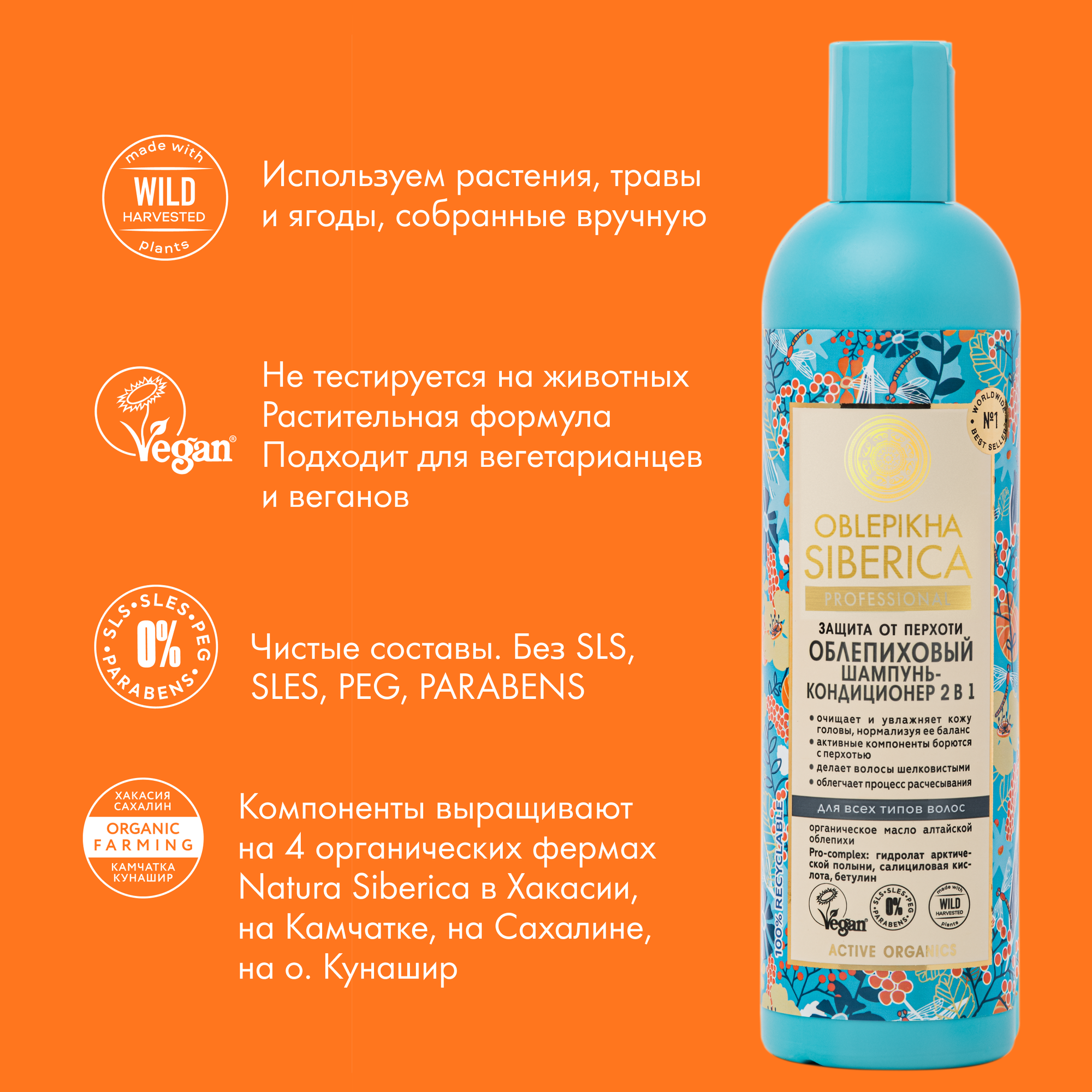 Облепиховый шампунь-кондиционер 2в1 от перхоти всех типов волос Natura Siberica Oblepikha Siberica интересное:
