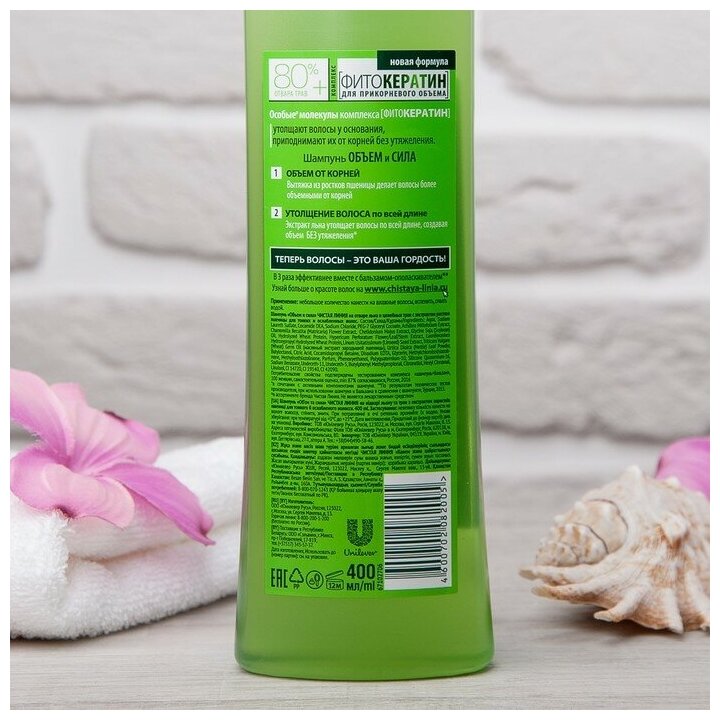Чистая Линия шампунь объем и сила для тонких и ослабленных волос с экстрактами льна и пшеницы, 400 мл