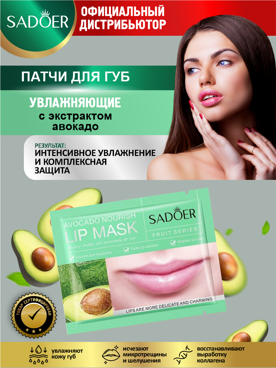 Увлажняющие патчи для губ Sadoer с экстрактом авокадо 8 гр. х 10 шт.