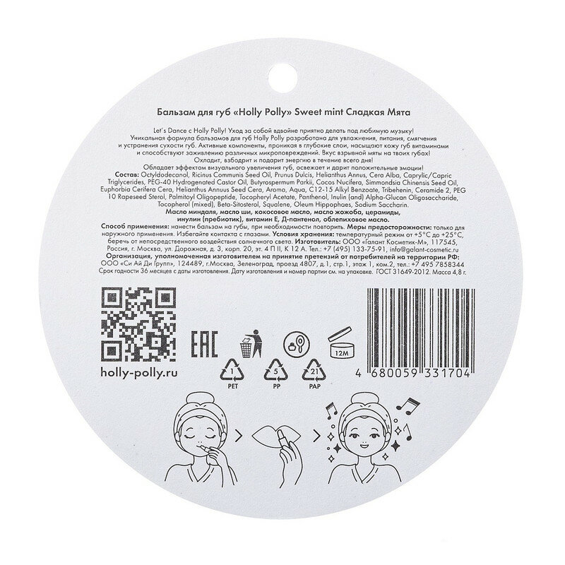 Бальзам для губ HOLLY POLLY Ice Ice Baby "Сладкая мята", 4,8 г интересное: