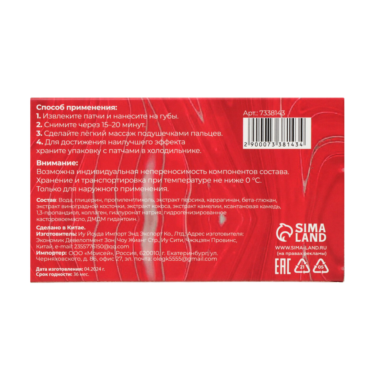 | Состав набора | патчи для губ 20 шт |