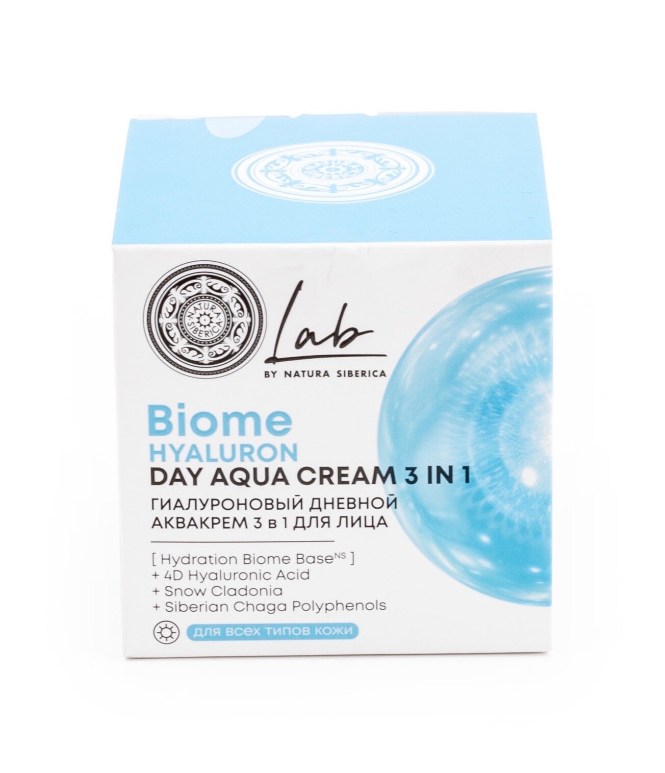 Купить Гиалуроновый дневной аквакрем 3 в 1 для лица Natura Siberica Lab Biome Hyaluron, 50 мл