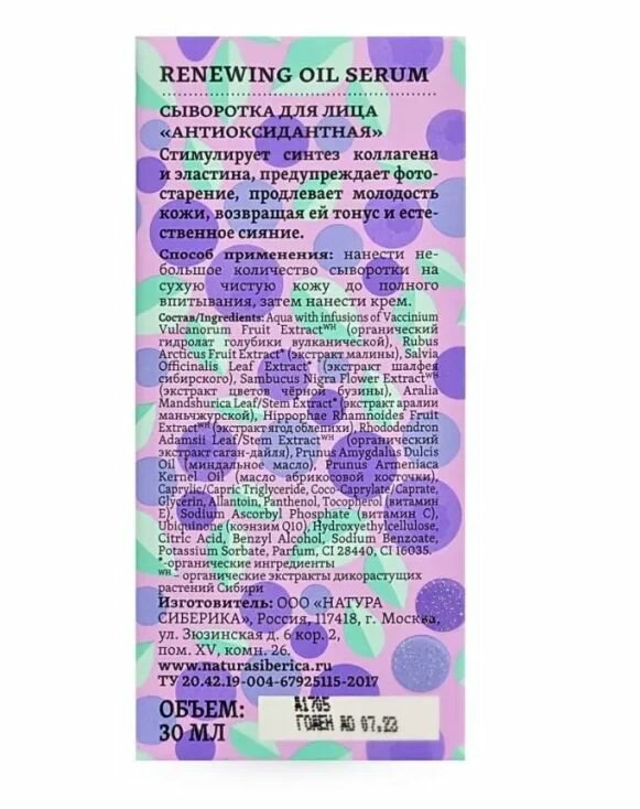 Сыворотка для лица «Антиоксидантная» Natura Siberica, Blueberry Siberica, 30 мл интересное: