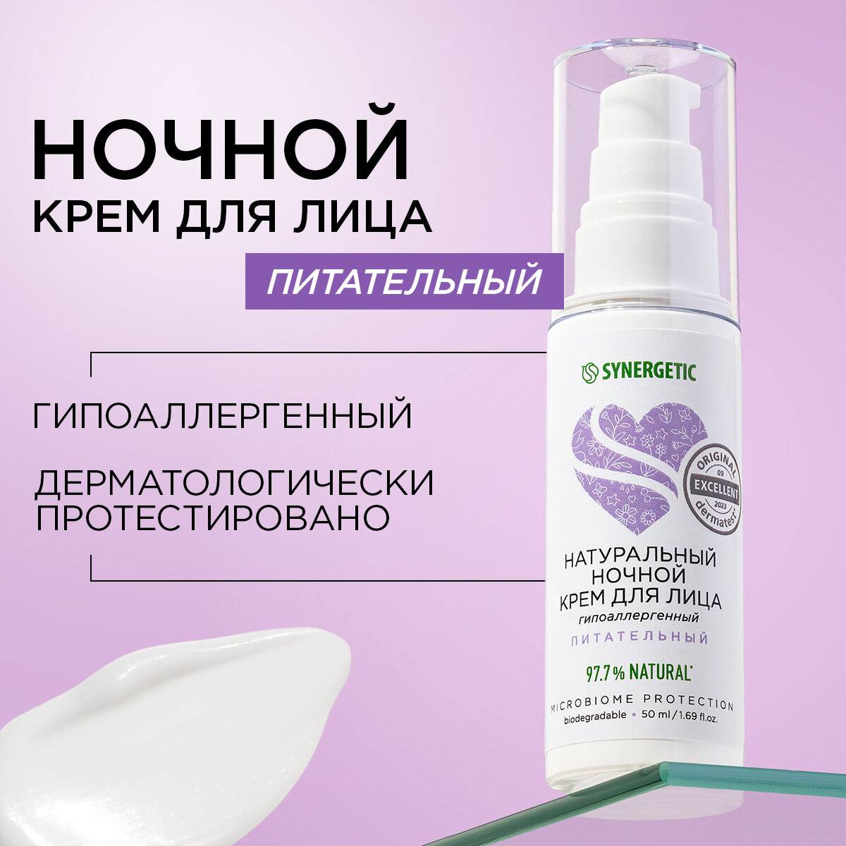 Гипоаллергенный крем для лица Synergetic Ночной, питательный 50мл