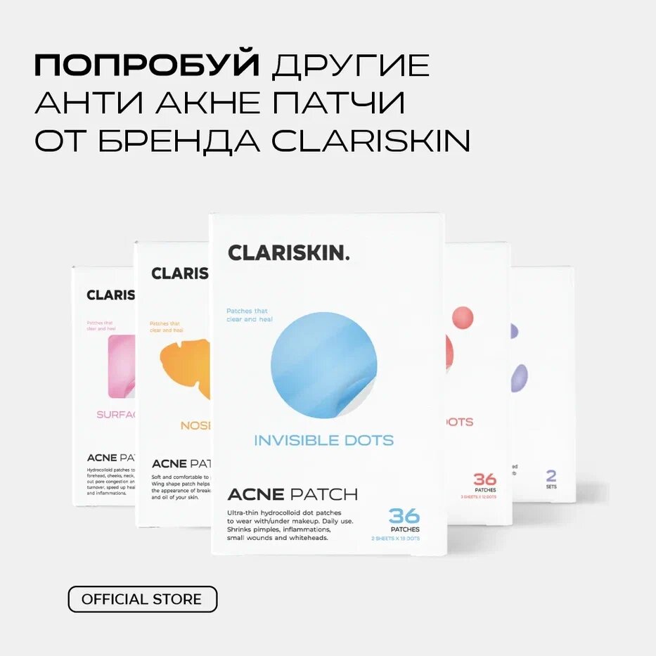 Патчи от прыщей и акне Clariskin 36 шт. Invisible Dots невидимые патчи от воспалений и под макияж интересное: