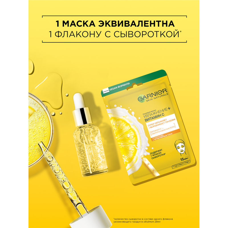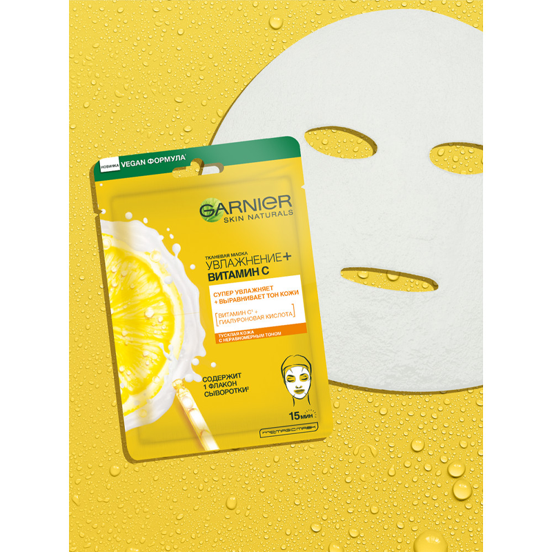 GARNIER тканевая маска Увлажнение + Витамин C, 28 г, 28 мл