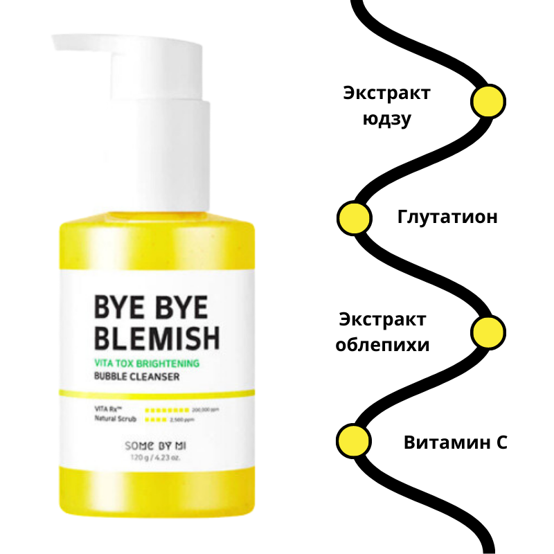 Гель-пенка для умывания `SOME BY MI` BYE BYE BLEMISH кислородная с витаминами и экстрактом юдзу (для сияния кожи) 120г интересное: