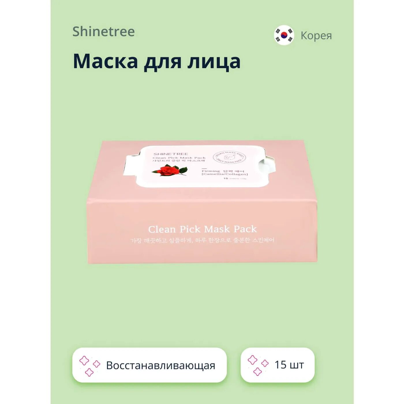 SHINETREE Маска для лица с экстрактом камелии и коллагеном (восстанавливающая) 15 шт