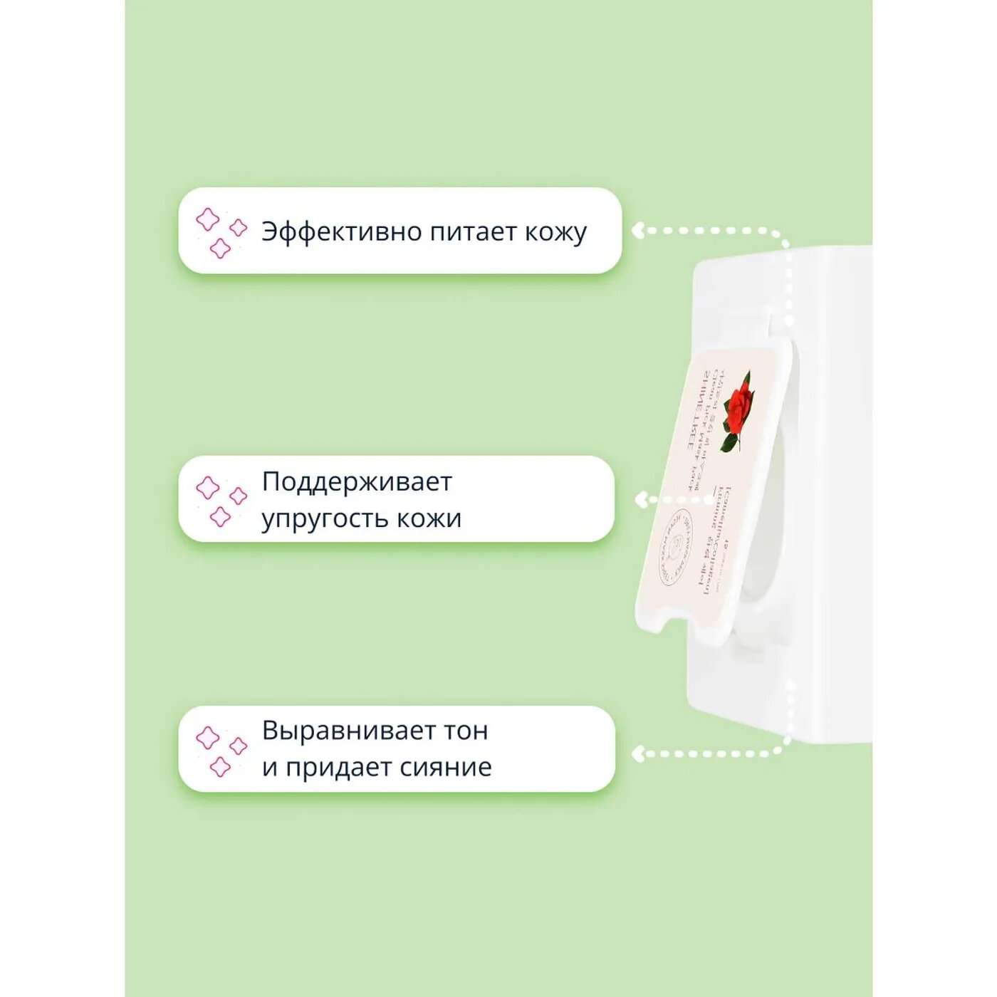| Способ применения | После умывания протрите кожу лица тонером. Откройте упаковку, достаньте маску и равномерно распределите ее на лице, оставьте для воздействия на 10-20 минут, затем аккуратно снимите. Нежно помассируйте кожу до полного впитывания эссенции. Только для наружного применения. Избегайте контакта с глазами. Хранить в недоступных для детей местах. В случае появления раздражения, немедленно прекратить использование. Хранить при температуре от +5°С до +25°С. |