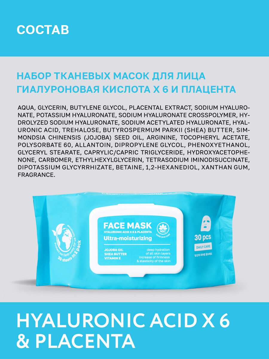 СохранитьNSC Тканевые маски для лица Гиалуроновая кислота x 6 и Плацента, 30 шт интересное: