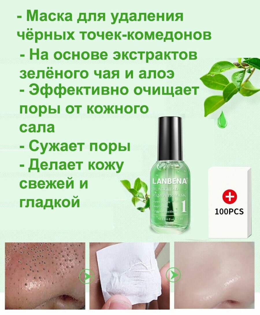LANBENA / Маска от черных точек с экстрактом камелии и алоэ вера Blackhead remover mask от акне и прыщей, от угрей, бумажные полоски для носа, 17мл интересное: