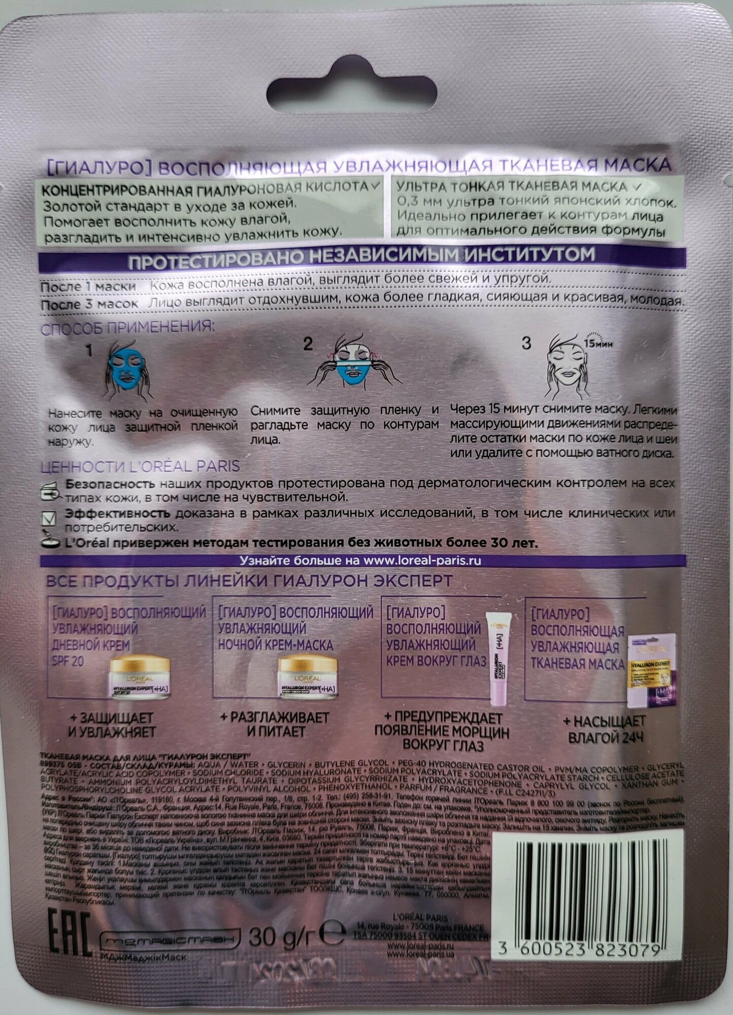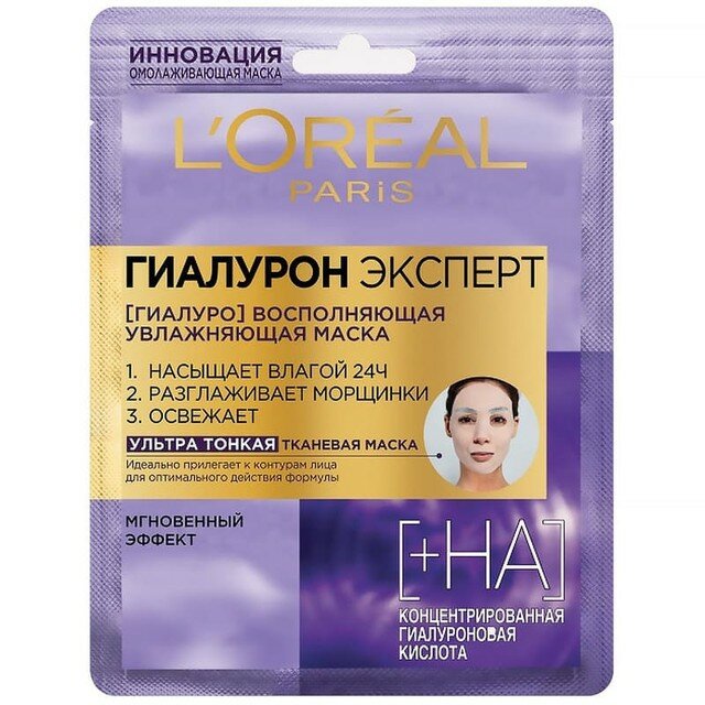 Купить L'Oreal Paris Тканевая маска для лица Гиалурон Эксперт, увлажняющая, ультра тонкая