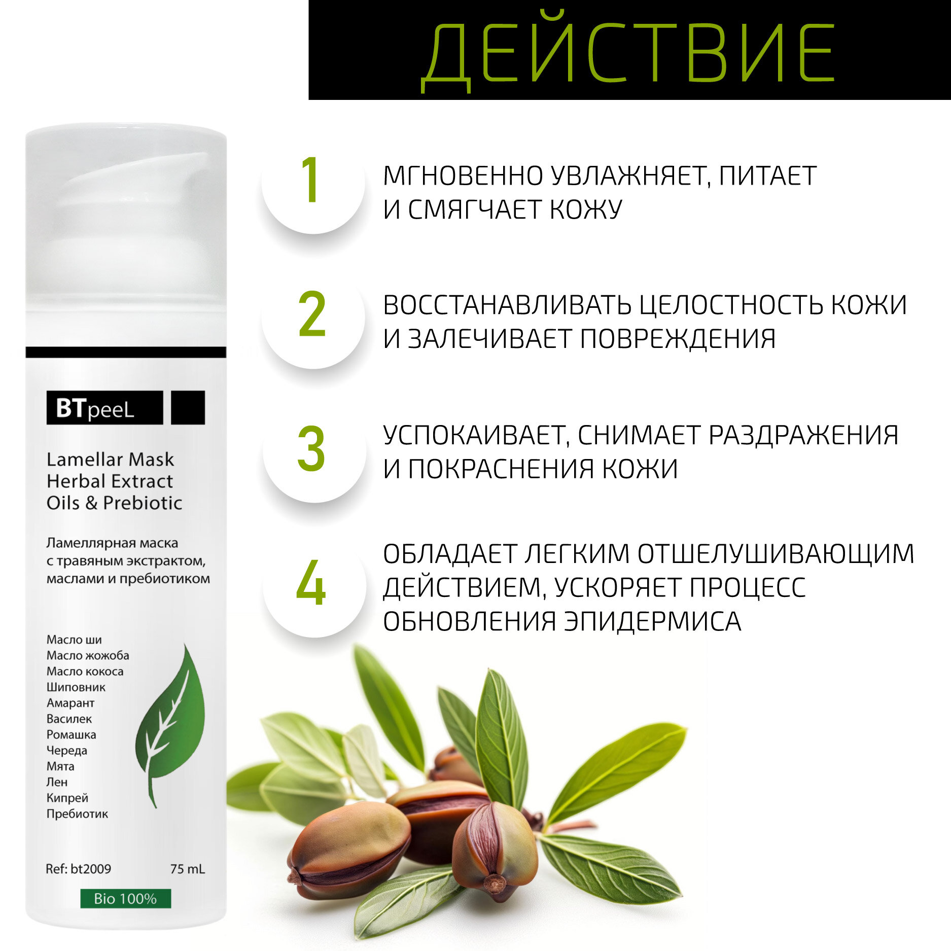 Маска ламеллярная питательная с травяным экстрактом и пребиотиком BTpeel, 75 мл интересное: