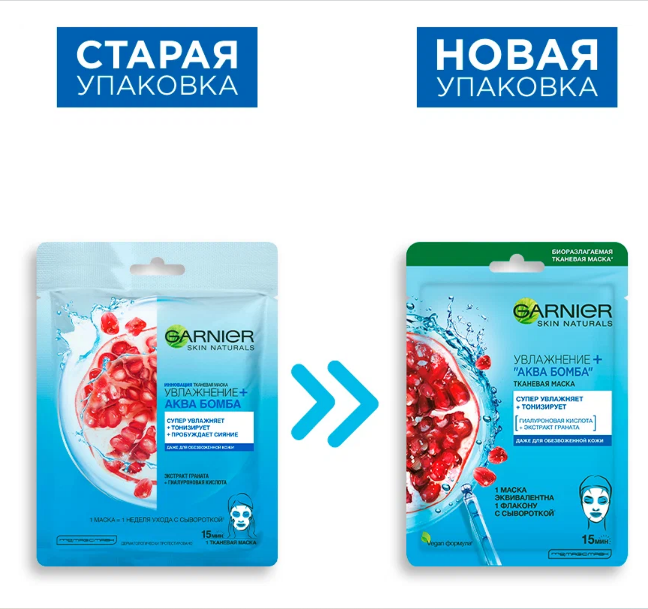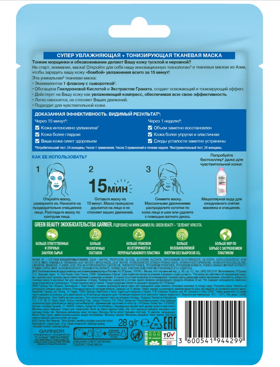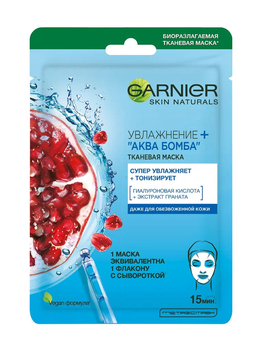 GARNIER тканевая маска Увлажнение + Аква Бомба, 1 мл 5 шт интересное: