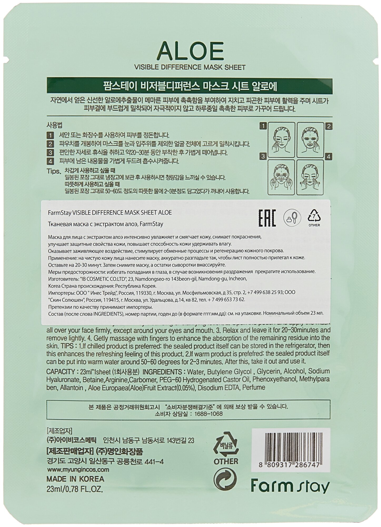 Ниже Вы можете прочитать отзывы на FarmStay Подарочный набор: Тканевая маска для ухода за кожей лица с экстрактом алоэ, корейская косметика. 23мл, 5шт, ознакомится с подробными характеристиками, посмотреть интересные обзоры и фотографии на FarmStay Подарочный набор: Тканевая маска для ухода за кожей лица с экстрактом алоэ, корейская косметика. 23мл, 5шт.