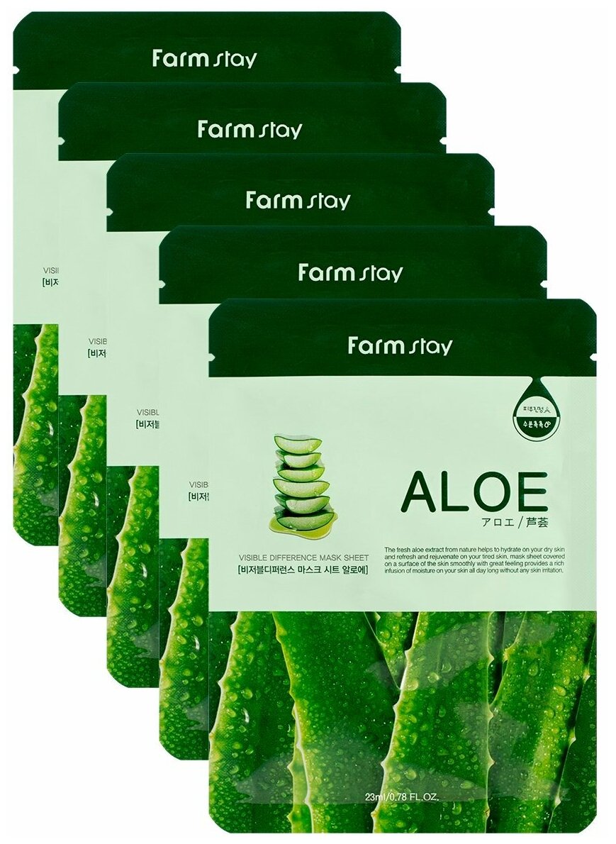 FarmStay Подарочный набор: Тканевая маска для ухода за кожей лица с экстрактом алоэ, корейская косметика. 23мл, 5шт интересное: