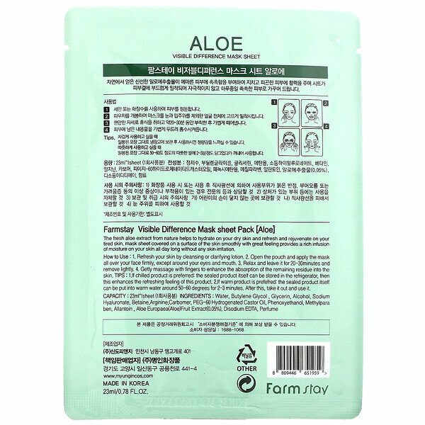 Маска тканевая с Алоэ FARMSTAY Visible Difference Mask Sheet Aloe 23ml *10шт
