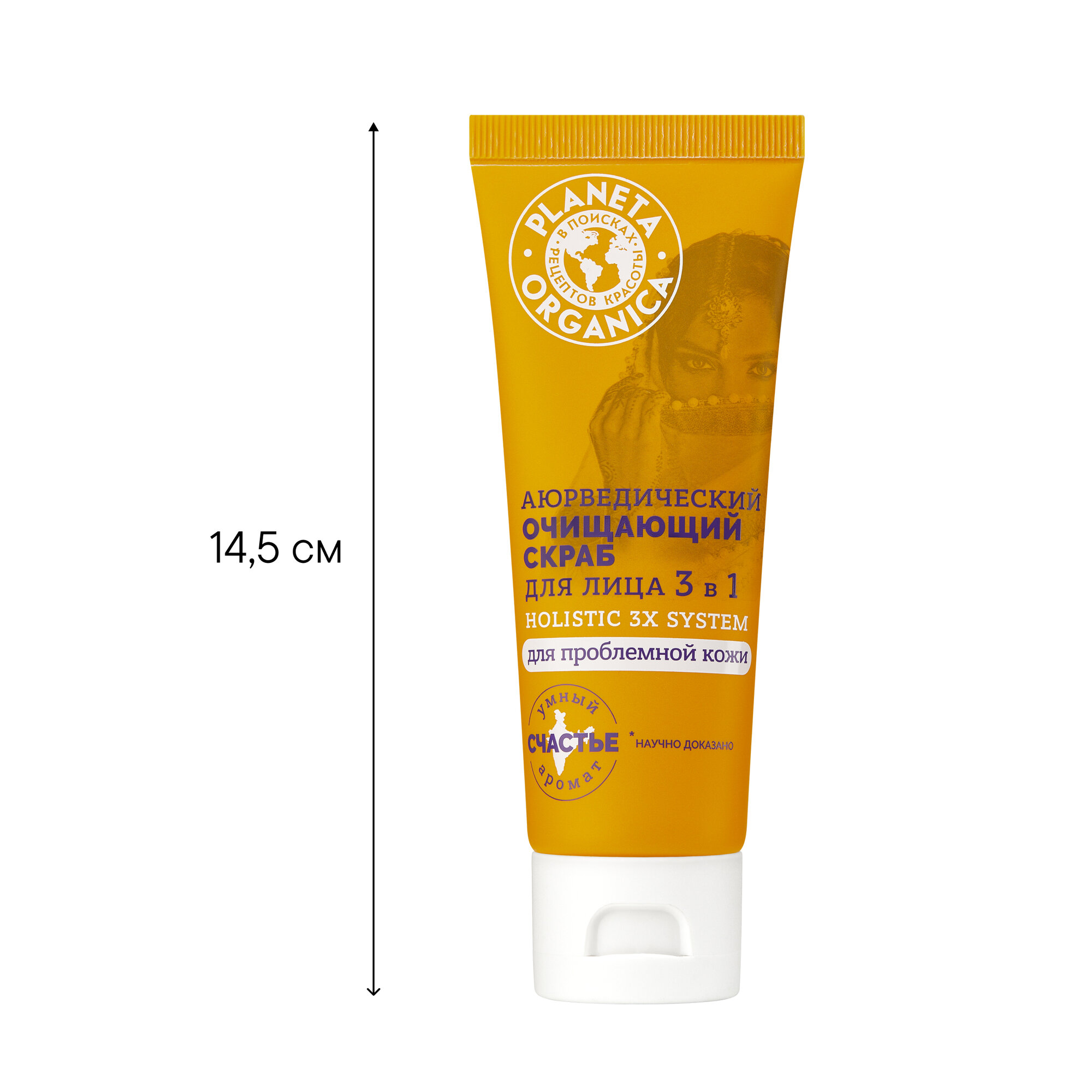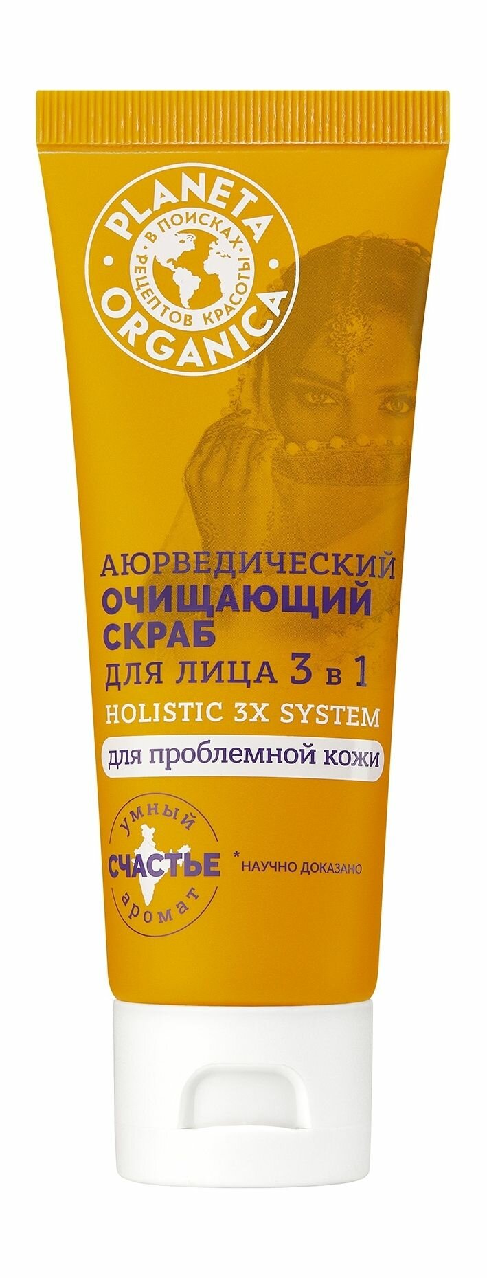 Очищающий скраб для лица Planeta Organica Holistic 3x system 3в1 аюрведический, 75 мл