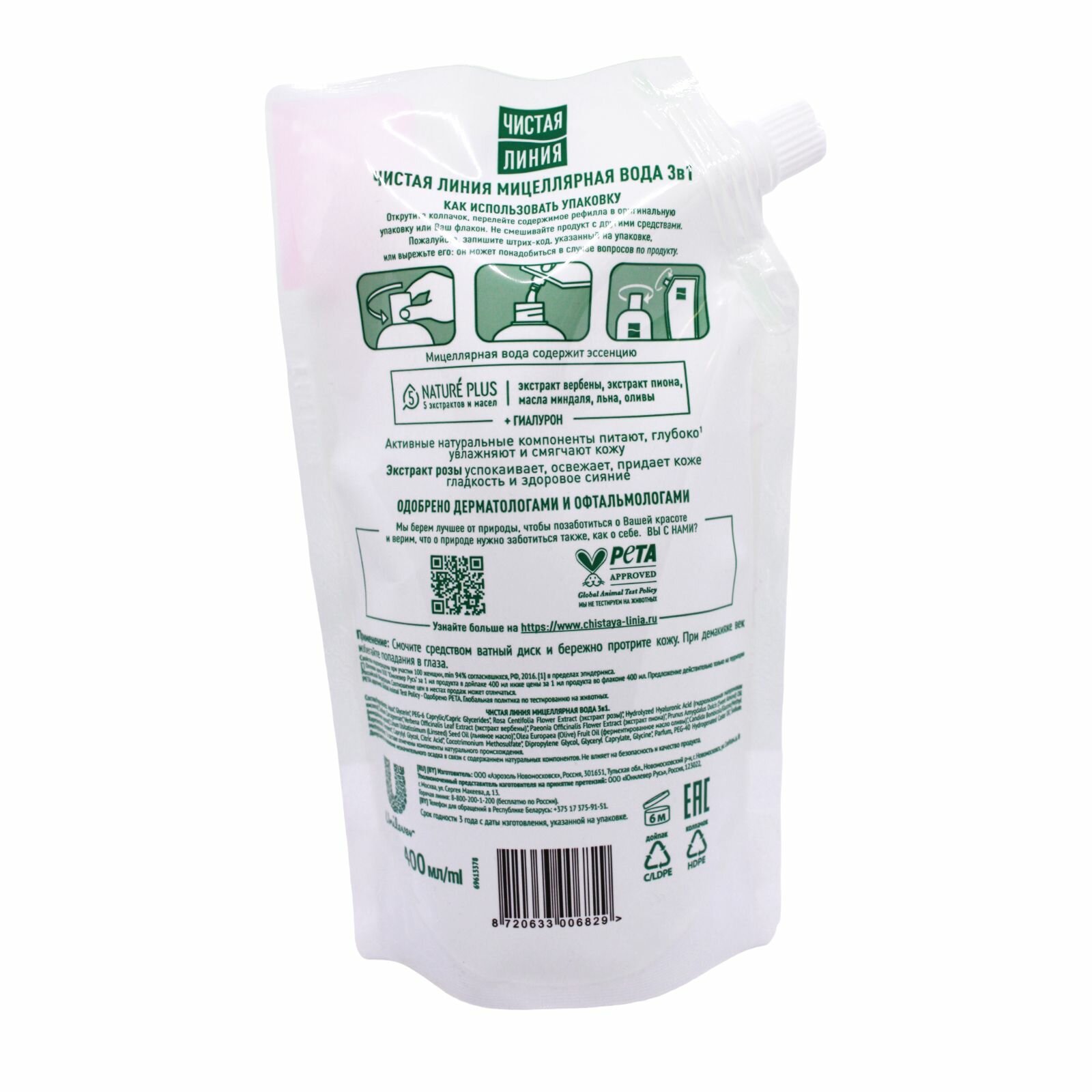 Купить Чистая Линия мицеллярная вода 3в1 с эссенцией из пяти экстрактов и масел, лепестками розы и гиалуроном 400 мл