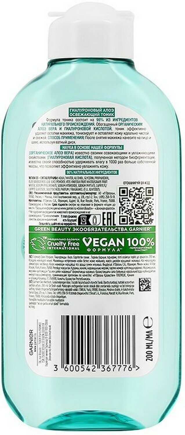 GARNIER Тоник гиалуроновый Алоэ для всех типов кожи, 200 мл - 6 шт