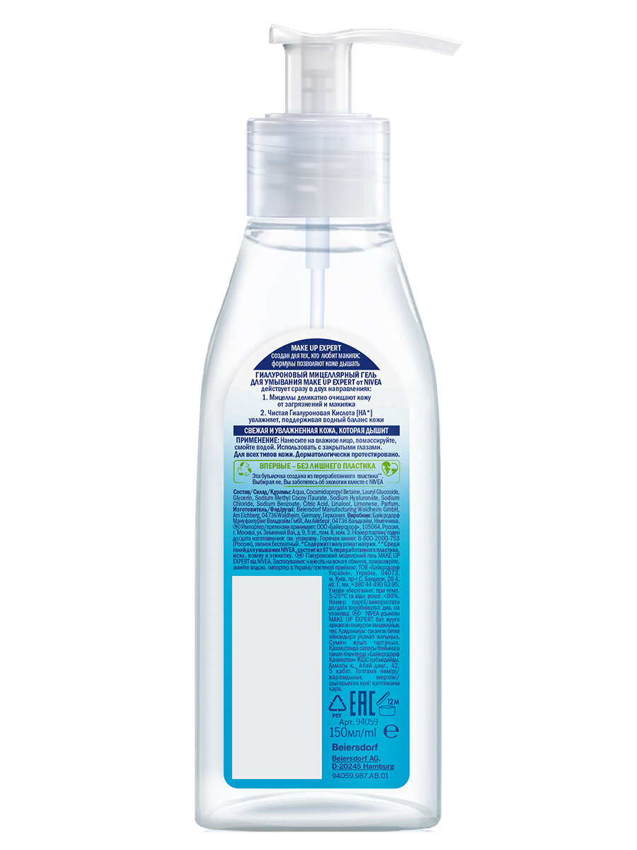 Nivea гиалуроновый мицеллярный гель Make Up Expert для умывания и снятия макияжа, 150 мл, 180 г интересное: