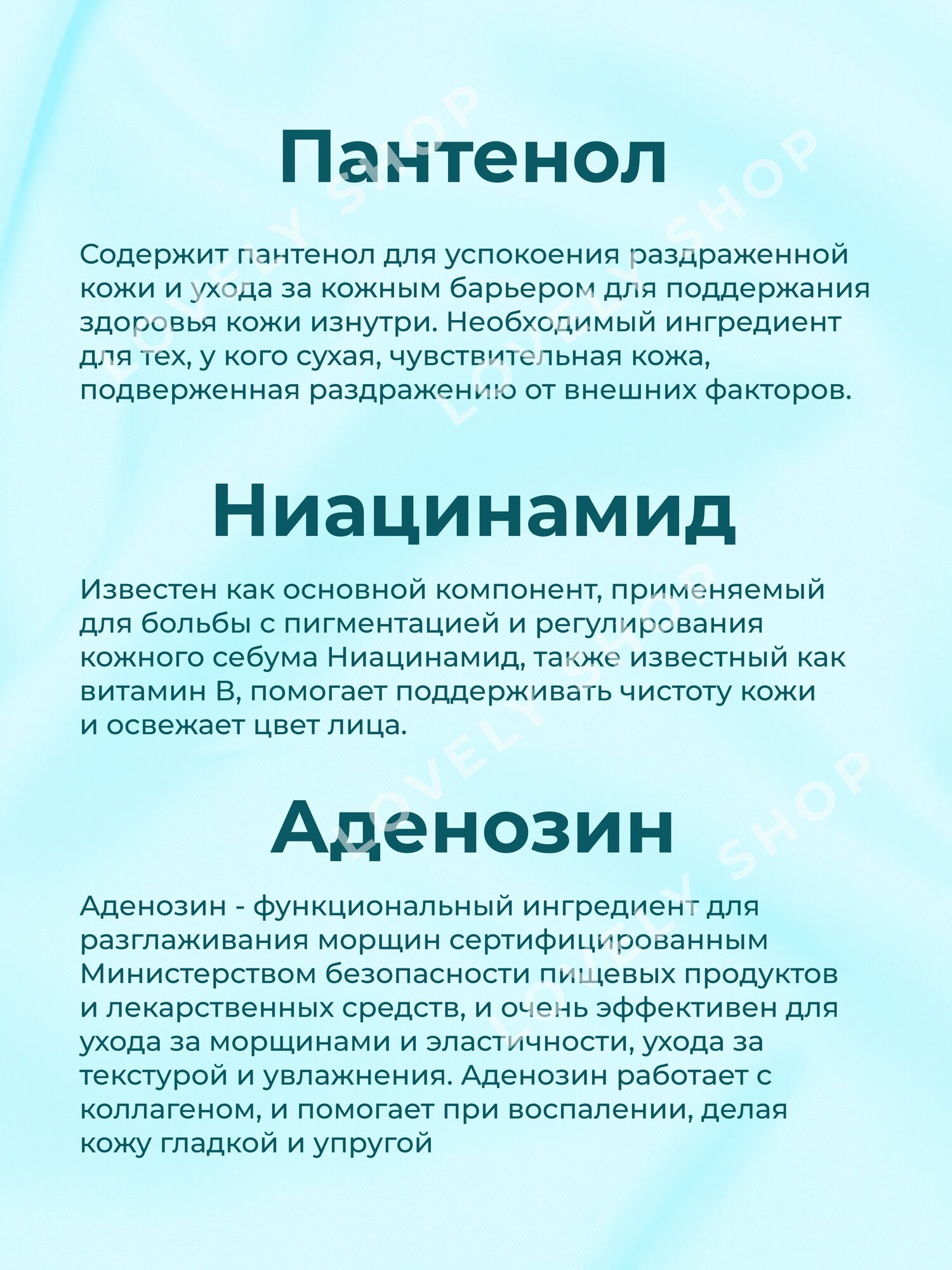 | Состав | ниацинамид, аденозин, пантенол |