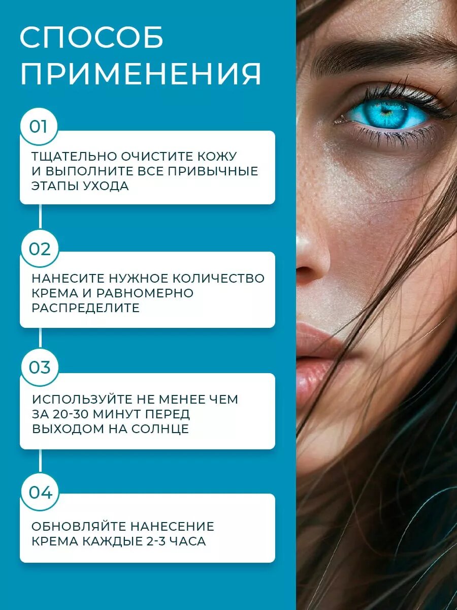 | Способ применения | нанести на лицо и открытые участки тела за 20-30 минут до выхода на улицу. Уменьшение количества крема или неравномерное распределение значительно снизит уровень защиты. Не рекомендуется долгое нахождение на солнце, даже при использовании солнцезащитного крема |