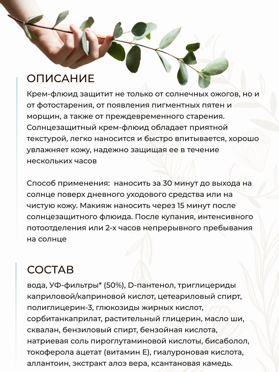 Клеона - 7.3 Солнцезащитный флюид для лица с гиалуроновой кислотой и D-пантенолом SPF 50