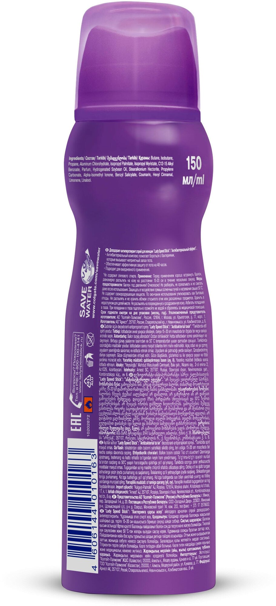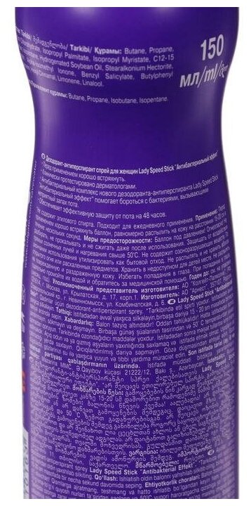 Lady Speed Stick дезодорант-антиперспирант, спрей, Антибактериальный эффект, 150 мл интересное: