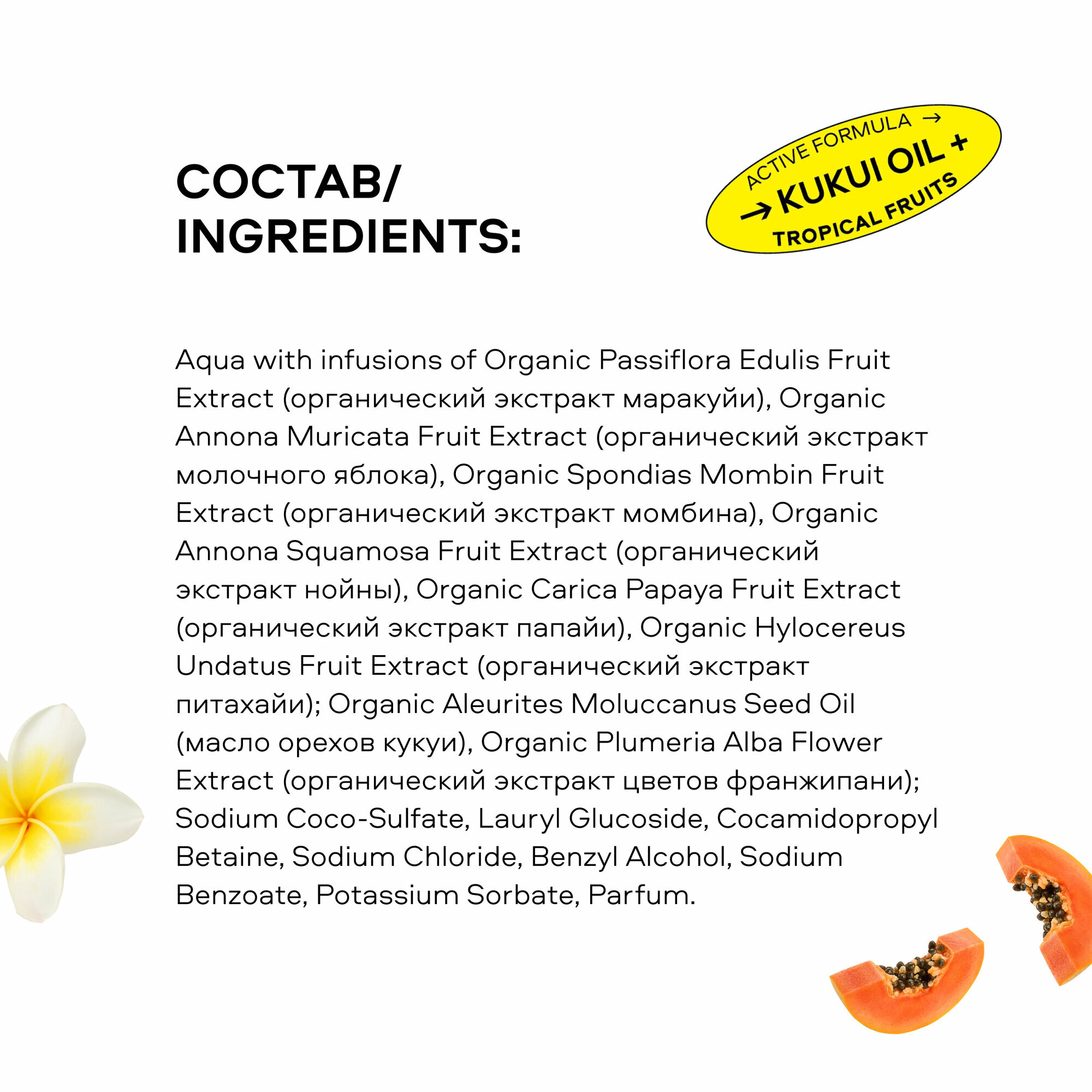 | Эффект | восстановление / очищение / питание / смягчение / тонизирование / увлажнение |