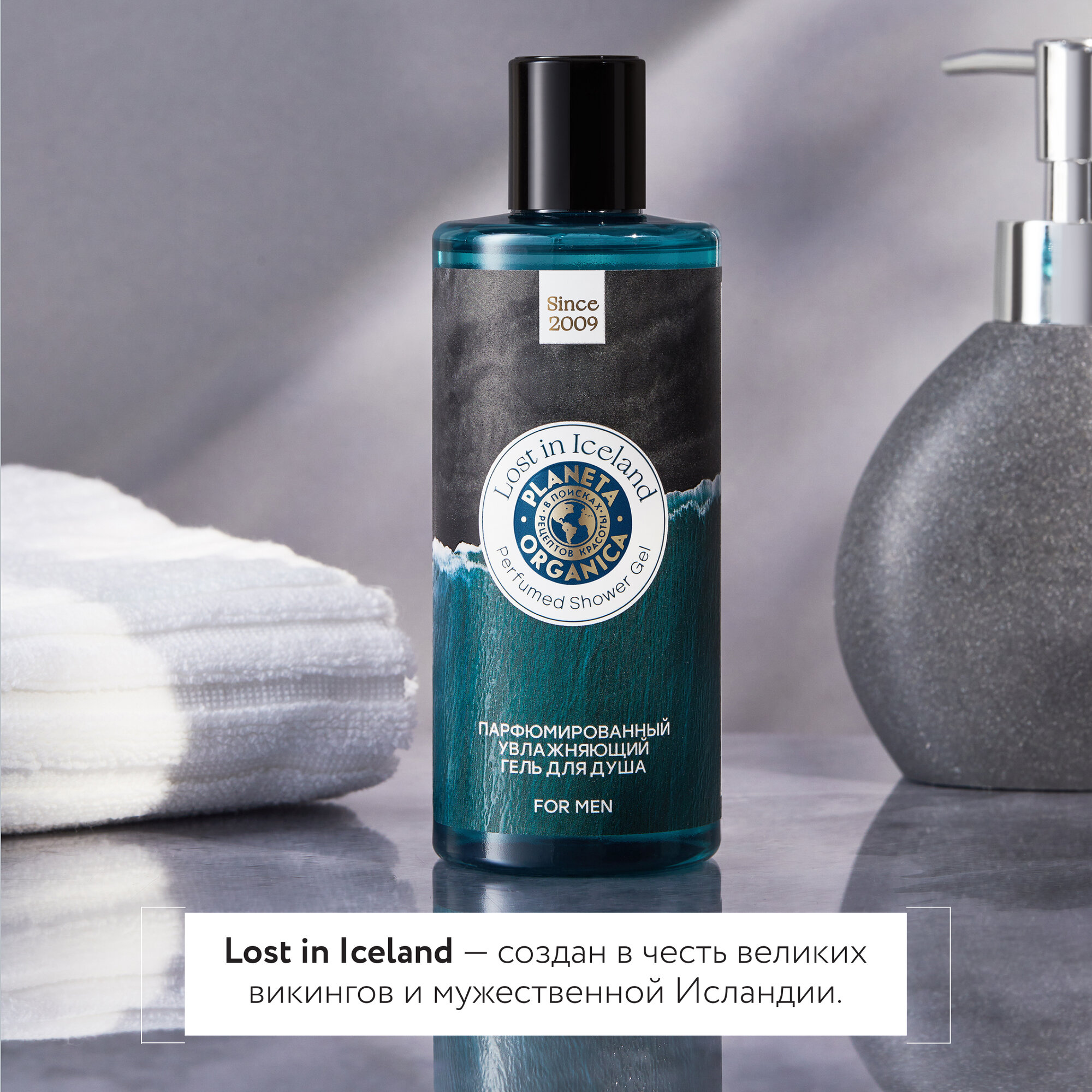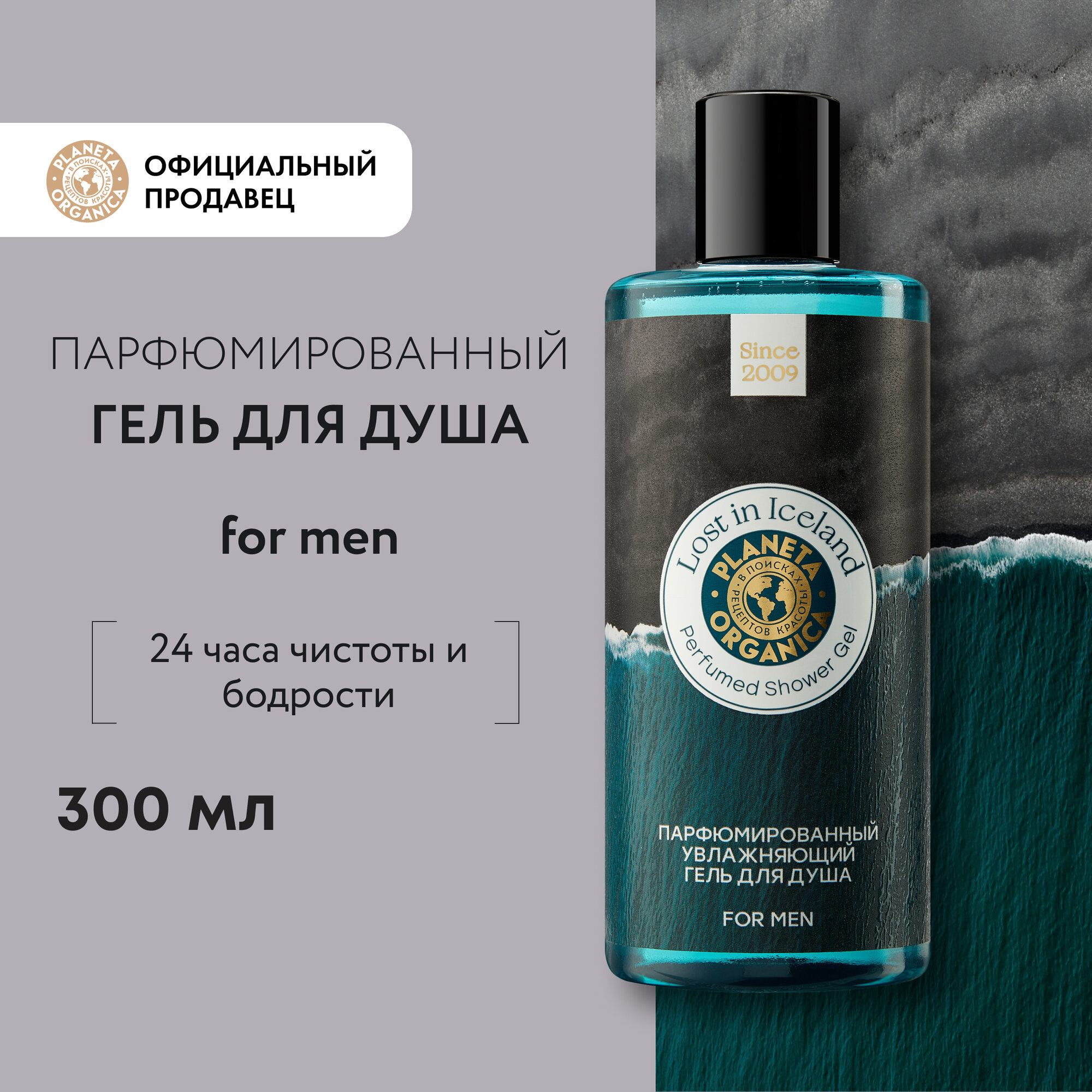 Planeta Organica MEN Lost in Iceland Гель для душа мужской парфюмированный увлажняющий, цитрусовый морской аромат с пачули, амброй и мускусом 300 мл