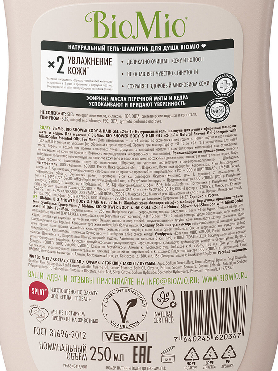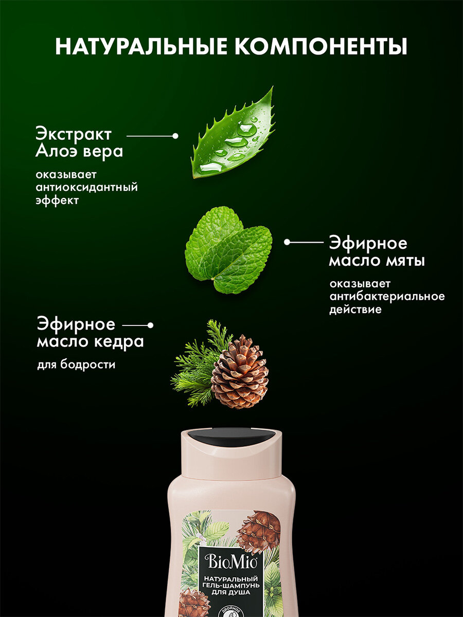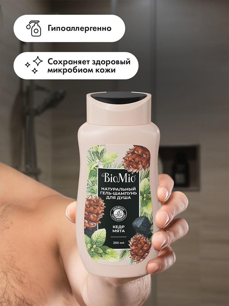 Гель-шампунь для душа BioMio 2в1 с эфирными маслами мяты и кедра 250мл интересное: