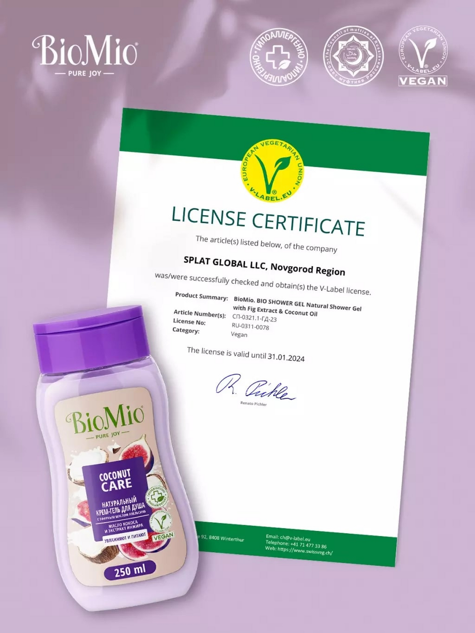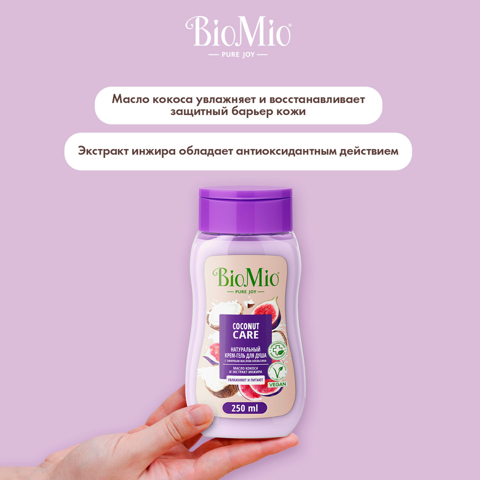 BioMio Натуральный гель для душа с экстрактом инжира и маслом кокоса, двойное увлажнение, 250 мл интересное: